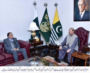 اسلام آباد(بی بی سی)صدر آزاد جموں وکشمیر بیرسٹر سلطان محمود چوہدری سے چیف جسٹس آزاد جموں وکشمیر سپریم کورٹ جسٹس راجہ سعید اکرم کی ایوان صدر کشمیر ہاؤس اسلام آباد میں ملاقات۔ اس موقع پر ملاقات میں صدر آزاد جموں وکشمیر بیرسٹر سلطان محمود چوہدری اور چیف جسٹس آزاد جموں وکشمیر سپریم کورٹ جسٹس راجہ سعید اکرم کے درمیان باہمی دلچسپی سمیت دیگر امور پر بھی تبادلہ خیال کیا گیا۔