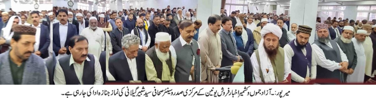 آزاد کشمیر جموں و کشمیر اخبار فروش یونین کے مرکزی صدر و سینئر صحافی سید شبیر گیلانی کی نماز جنازہ پنڈی سبھروال جامع مسجدمیں ادا کر دی گی۔