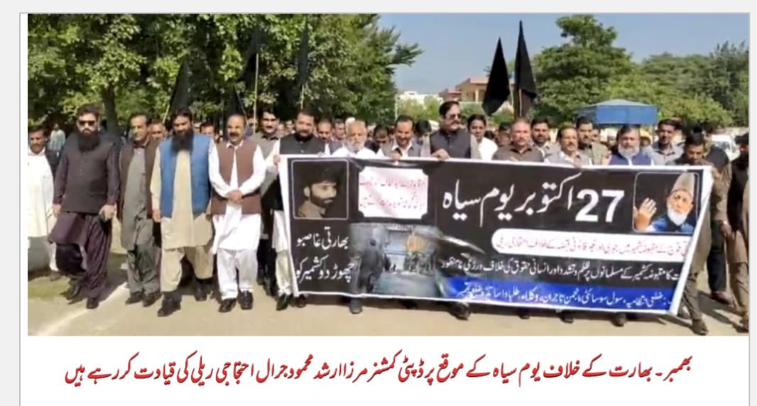 بھمبر(بی بی سی)ضلع بھمبر میں بھارت کے خلاف یوم سیاہ،ڈپٹی کمشنر مرزا ارشد محمود جرال کی زیر قیادت ریلی میں شرکاء نے کہاکہ عالمی برادری کشمیریوں پر بھارتی ظلم و بربریت کانوٹس لے،بھارت دہشت گرد ملک ہے،76سالوں سے بے گناہ کشمیریوں کو شہید کیا جارہاہے،حریت راہنماوں کو آزاد کریں۔تفصیلات کے مطابق ڈی سی آفس سے بھارت مخالف ریلی کاآغاز ہوا ،جو گول چوک چلڈرن پارک سے ہوتی ہوئی واپس ڈی سی آفس سبزہ زارمیں مقررین کے خطا ب و دعا کے بعد اختتام پذیر ہوئی،ریلی میں ایس ایس پی راجہ محمد اکمل خان،ایس ڈی ایم محمدعیص بیگ سمیت جملہ ضلعی و تحصیل افسران کے علاوہ دیگر مکاتب فکر سے کثیرتعداد میں افراد شریک ہوئے،احتجاجی مظاہرین نے بازو پر کالی پٹیاں باندھ کر بھارت کے خلاف احتجاج کیا بینزر اٹھا کر بھارت مخالف نعرے بازی احتجاج میں وکلا،صحافیوں،بلدیاتی نمائندوں،سول سوسائٹی سمیت تمام مکاتب فکر سے کثیر تعداد میں افراد کی شرکت نے عالمی برداری کو فلسطین کے مسلمانوں پر ظلم بند کرنے،مقبوضہ کشمیر کی آزادی کا مطالبہ کیا،صدر سٹیزن فورم اقبال انقلابی،محمد شعیب،سینیر صحافی سجاد مرزا،صادق شیخ و دیگر مقررین نے کہاکہ بھارت دہشت گرد ملک ہے،76سالوں سےبے گناہ کشمیریوں کو شہید کیا جارہاہے،بھارت دہشت گرد ملک ہے حریت راہنماوں کو آزاد کرنے کا مطالبہ کرتے ہیں،بھارت کے خلاف یوم سیاہ پر احتجاجی ریلی کے ذریعہ عالمی دنیاکو امن کا پیغام دیتے ہیں،ریلی شرکاء نے ضلعی انتظامیہ کی کاوشوں کو سراہا،ڈپٹی کمشنرنے شرکا ء کا شکریہ ادا کیا،تحصیلدار قیصرم محمود شمس نے نظامت اور دعا کے فرائض سر انجام دیئے۔پولیس،ٹریفک پولیس سمیت جملہ محکمہ جات نے شرکت کی