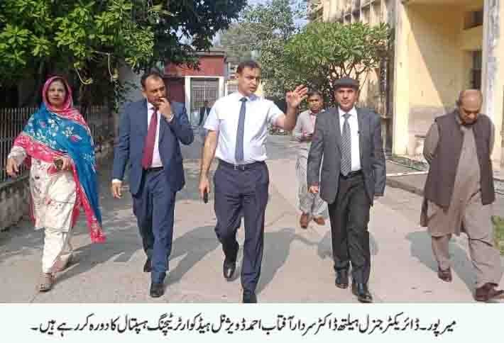 میرپور (بی بی سی)ڈائریکٹر جنرل ہیلتھ ڈاکٹر سردار آفتاب احمد کا ڈویژنل ہیڈ کوارٹر ٹیچنگ ہسپتال میرپور کا تفصیلی وزٹ ڈاکٹرز اور دیگر سٹاف کی کارکردگی پہ اطمینان کا اظہار۔تفصیلات کے مطابق ڈائریکٹر جنرل ہیلتھ ڈاکٹر سردار آفتاب احمد نے ڈویژنل ہیڈ کوارٹر ٹیچنگ ہسپتال میرپور کاتفصیلی وزٹ کیا ڈائریکٹر جنرل ہیلتھ نے ہسپتال کے مختلف ڈیپارٹمنٹ کا تفصیلی وزٹ کیا۔ ڈاکٹرز اور دیگر ملازمین کی حاضری چیک کی تسلی بخش حاضری ہونے پہ اطمینان کا اظہار کیا۔مزید برآں میڈیکل سپرنٹنڈنٹ ڈاکٹر عامر عزیز، ایڈیشنل میڈیکل سپرنٹنڈنٹ ڈاکٹر ارشد محمود، ڈپٹی میڈیکل سپرنٹنڈنٹ ڈاکٹر ارم بتول، ہیڈ آف ڈیپارٹمنٹ ENT اسسٹنٹ پروفیسر ڈاکٹر اعجاز احمد راجہ اور دیگر کے ہمراہ ہسپتال کی گائنی، سرجیکل اور الائیڈ OPD کے علاؤہ میڈیسن، پیڈز، کشمیر انسٹیٹیوٹ آف کارڈیالوجی ڈیپارٹمنٹ اور انجمن فلاح و بہبود انسانیت کے تعاون سے تعمیر کی گئی پناہ گاہ کا بھی وزٹ کیا۔کشمیر انسٹیٹیوٹ آف کارڈیالوجی میں دوران وزٹ گفتگو کرتے ہوئے ڈائریکٹر جنرل ہیلتھ نے بدھ کے روز ہونے والی CPSP میٹنگ کی تفصیلی بریفننگ لی اور ضروری ہدایات جاری کی اور ٹریننگ میں درپیش آنے والے مسائل کے حل کیلئے لئے اپنے بھرپور تعاون کا اعلان کیا۔مجموعی طور پہ ہسپتال میں دستیاب وسائل کو مریضوں کی بہتری کے لئے بہترین طریقہ سے استعمال کرنے پہ میڈیکل سپرنٹنڈنٹ ڈاکٹر عامر عزیز کی حوصلہ افزائی کی۔