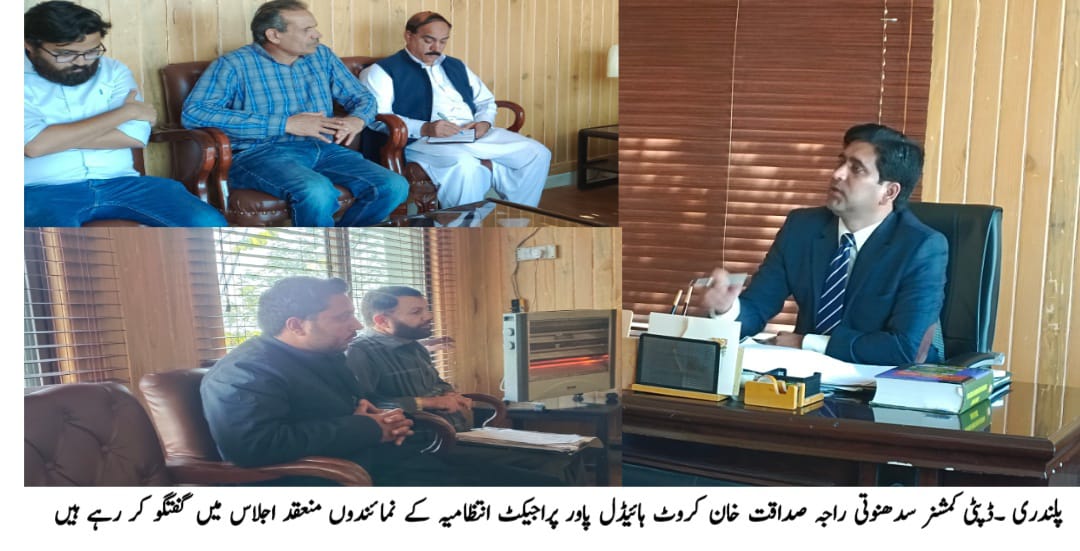 پلندری (بی بی سی)ڈپٹی کمشنر سدھنوتی راجہ صداقت خان کی آفس چیمبر میں کروٹ ہائیڈل پاور پراجیکٹ انتظامیہ کے نمائندوں سے میٹنگ ۔آزاد پتن پانہ پل پر لائٹنگ ،سیکیورٹی سسٹم کی تنصیب ، پانہ قبرستان کے گرد حفاظتی دیوار اور ازاد پتن کہوٹہ روڈ پر سلائڈنگ ایریا کی فوری مرمتی کی ہدایات دی گئی جس پر پراجیکٹ انتظامیہ کے نمائندوں نے فوری کام کا یقین دلایا۔اس موقع پر ڈپٹی ڈائریکٹر لوکل گورنمنٹ سردار زاہد حسین ،اسسٹنٹ کمشنر ہیڈکوارٹر سردار محمد پرویز خان ،ڈسٹرکٹ انفارمیشن آفیسر ناصر لطیف ڈیم انتظامیہ کے نمائندوں سمیت دیگر بھی موجود تھے۔ڈپٹی کمشنر نے کروٹ ہائیڈل پاور پراجیکٹ کی تعمیر سے مقامی لوگوں کی مشکلات اور عوامی جزبات سے نمایندوں کو آگاہ کرتے ہوئے ہدایت کی کہ یہ منصوبہ جات فوری مکمل کیے جائیں تاکہ مقامی لوگوں کی مشکلات کو دور کیا جا سکے۔ انہوں نے کہا کہ کروٹ ہائیڈل پاور پراجیکٹ کی انتظامیہ نے سی آئی پی منصوبہ جات کی تعمیر کے لیے منظور کی گئی رقوم کی منتقلی نہ ہونے کی وجہ سے منصوبہ جات تعطل کا شکار رہے ۔ ڈپٹی کمشنر نے زور دیا کہ پانہ کے مقام پر نیا تعمیر پل پر لائٹنگ اور سیکورٹی سسٹم کی تنصیب نہ ہونے کہ وجہ سے بھی امن و امان کو خطرہ لاحق ہے جسے فوری مکمل کیا جائے جبکہ آزاد پتن کہوٹہ روڈ بارشوں میں سلائڈنگ کی زد میں رہنے کی وجہ سے لوگوں کو شدید سفری مشکلات ہیش آتی ہیں جس کی مرمتی فوری عمل میں لائی جائے ۔ پراجیکٹ انتظامیہ کے نمائندوں نے فوری کام شروع کرنے کی یقین دھانی کرائی ۔