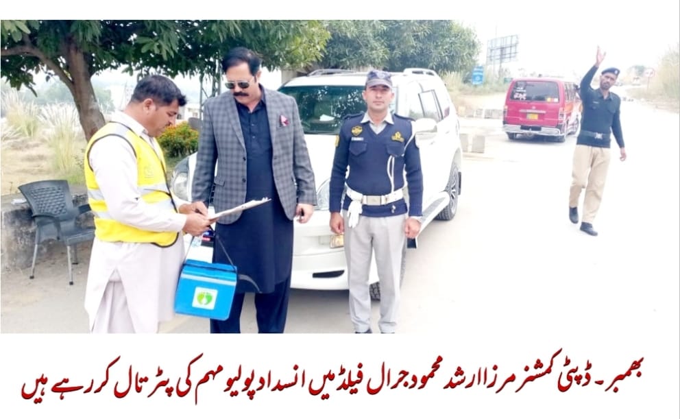 بھمبر(بی بی سی) انسدادپولیومہم کا پہلادن،ڈپٹی کمشنرمرزا ارشدمحمودجرال نے میرپور روڈ پرمختص ٹرانزٹ پوائنٹس کا دورہ کیا،100 سے زائد بچوں کوپلائے جانے والے ڈراپس کی رپورٹ کوملاحظہ کیا،ہیلتھ ڈیپارٹمنٹ کے ایس او پیز یونیفارم کا جائزہ لیا ڈپٹی کمشنرنے کہاکہ وزیراعظم آزادکشمیرچوہدری انوارالحق کے احکامات پرپولیو فری ریاست کو برقراررکھنا ہماری منزل ہے،ہیلتھ ٹیمز کے ساتھ عوام ومسافر تعاون کریں،پولیس و دیگر ادارہ جات بھی ہمراہ ہیں،مہم کو کامیاب بنایاجائے گا