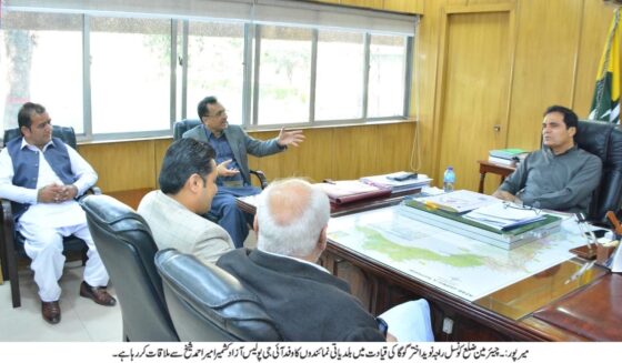 میرپور (بی بی سی)چیئرمین ضلع کونسل میرپور راجہ نوید اختر گوگانے وفد کے ہمراہ انسپکٹر جنرل پولیس آزاد کشمیر امیر احمد شیخ سے مظفرآباد میں ملاقات کی ملاقات میں چیئرمین ضلع کونسل جہلم ویلی،چیئرمین نیلم ویلی،ممبر ضلع کونسل چوہدری بنارس…