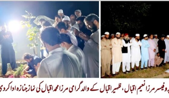 بھمبر(بی بی سی)پرنسپل (ر) پروفیسر نعیم اقبال مرزا ،سابق چیئرمین بلدیہ مرزا شاہد اقبال مرحوم ،مرزا ظفر اقبال اور مرزا ظہیر اقبال کے والد محترم مرزا محمد اقبال( ر) ہیڈ پوسٹ ماسٹر گذشتہ روز انتقال فرما گئے مرحوم کی نماز…