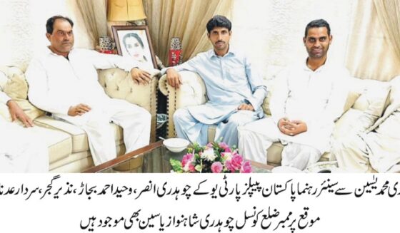 اسلام آباد(بی بی سی)صدر آزاد جموں وکشمیربیرسٹر سلطان محمود چوہدری سے چیئرمین ضلع کونسل میرپور راجہ نوید اختر گوگا اور صدارتی کورآرڈینیٹر چوہدری امجد محمود کی ایوان صدر کشمیر ہاؤس میں تفصیلی ملاقات۔ اس موقع پر چیئرمین ضلع کونسل میرپور…